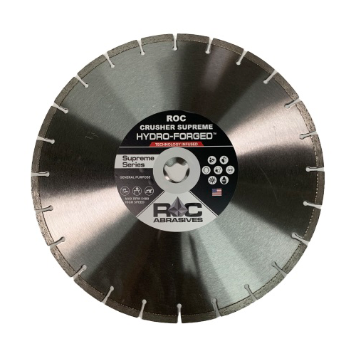 Description: Supreme series diamond blade which cuts green concrete & asphalt with undercut protection. Will not chip, peel or crack green concrete, very high-end blade.